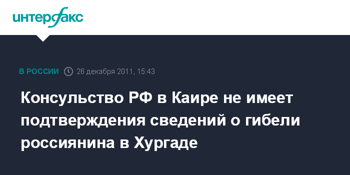 Консульство РФ в Каире не имеет подтверждения сведений о гибели россиянина в Хургаде