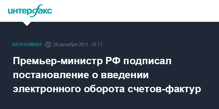Премьер-министр РФ подписал постановление о введении электронного оборота счетов-фактур