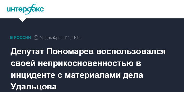Депутат Пономарев воспользовался своей неприкосновенностью в инциденте с материалами дела Удальцова
