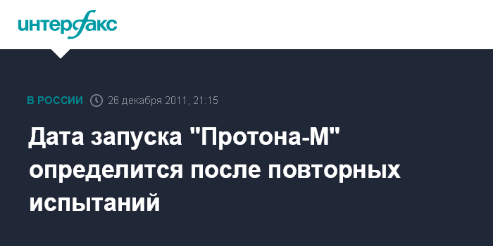 Дата запуска "Протона-М" определится после повторных испытаний