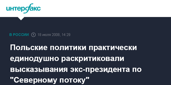 В четверг "Речь Посполита" сообщила, что А.Квасьневский поддержал реализацию проекта строительства газопровода "Северный поток". "Бывший президент Александр Квасьневский - первый из польских политиков, кто поддержал северный газопровод", - отмечает издание.