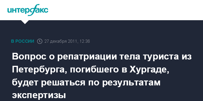 Вопрос о репатриации тела туриста из Петербурга, погибшего в Хургаде, будет решаться по результатам экспертизы
