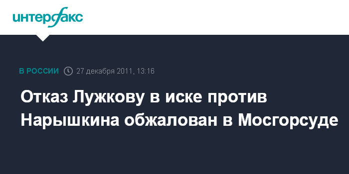 Отказ Лужкову в иске против Нарышкина обжалован в Мосгорсуде