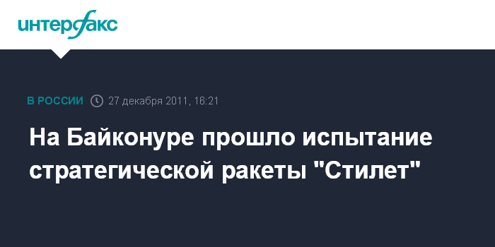 Байконур. 27 декабря. INTERFAX.RU - Пуск межконтинентальной баллистической ракеты РС-18 (по западной классификации "Стилет") осуществлен во вторник с космодрома Байконур, сообщили "Интерфаксу-АВН" в космическом центре "Южный".