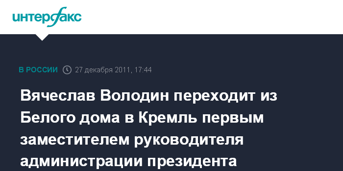 Горки. 27 декабря. INTERFAX.RU - Президент РФ Дмитрий Медведев назначил Вячеслава Володина заместителем руководителя администрации президента.