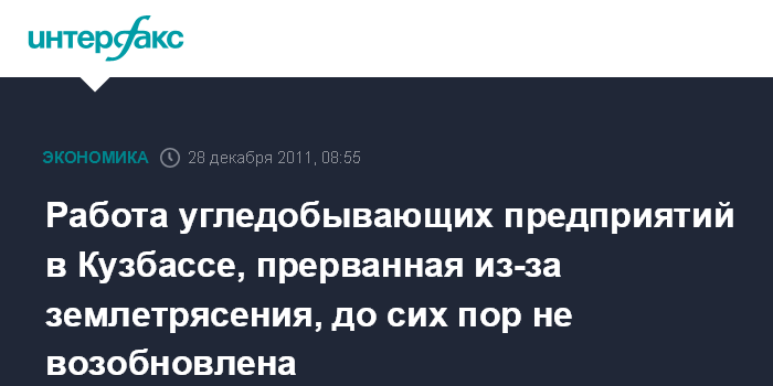 Работа угледобывающих предприятий в Кузбассе, прерванная из-за землетрясения, до сих пор не возобновлена