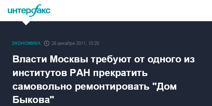 Власти Москвы требуют от одного из институтов РАН прекратить самовольно ремонтировать "Дом Быкова"