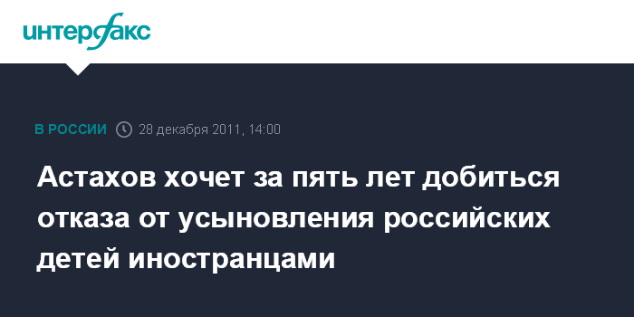 Астахов хочет за пять лет добиться отказа от усыновления российских детей иностранцами