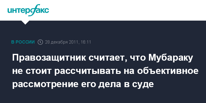 Правозащитник считает, что Мубараку не стоит рассчитывать на объективное рассмотрение его дела в суде