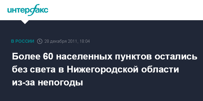 Нижний Новгород. 28 декабря. INTERFAX.RU - Сильный штормовой фронт, сопровождавшийся мокрым снегом и порывами ветра до 25 м/с, в среду привел к технологическому нарушению электроснабжения жителей Нижегородской области, сообщила пресс-служба "Нижновэнерго" (филиал ОАО "МРСК Центра и Приволжья").