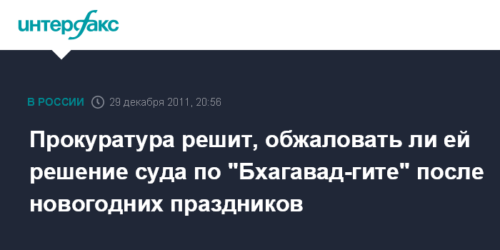 Прокуратура решит, обжаловать ли ей решение суда по "Бхагавад-гите" после новогодних праздников
