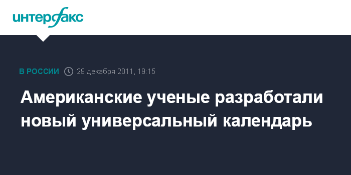 Вашингтон. 29 декабря. INTERFAX.RU - Ученые из США разработали календарь, в котором дата всегда совпадает с днем недели, сообщает в четверг американский телеканал CNN.