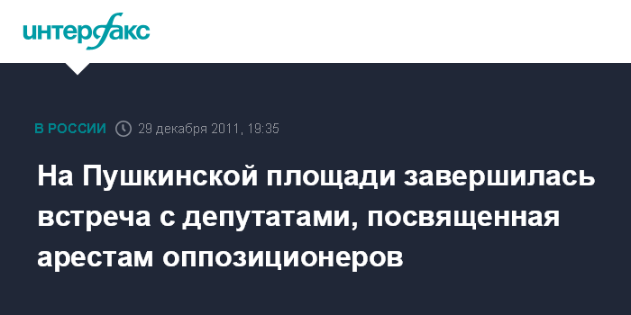 Москва. 29 декабря. INTERFAX.RU - Встреча с депутатом Госдумы от "Справедливой России" Ильей Пономаревым на Пушкинской площади завершилась, передает корреспондент "Интерфакса".