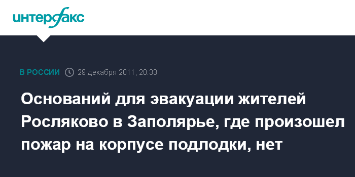 Оснований для эвакуации жителей Росляково в Заполярье, где произошел пожар на корпусе подлодки, нет