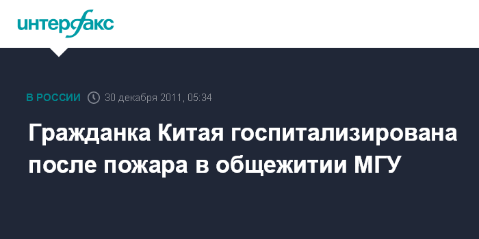 Гражданка Китая госпитализирована после пожара в общежитии МГУ