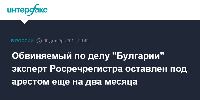 Обвиняемый по делу "Булгарии" эксперт Росречрегистра оставлен под арестом еще на два месяца