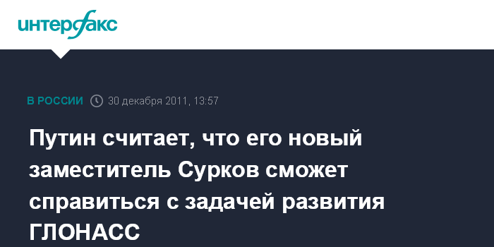 Путин считает, что его новый заместитель Сурков сможет справиться с задачей развития ГЛОНАСС