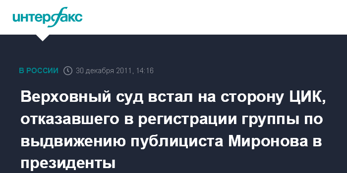 Верховный суд встал на сторону ЦИК, отказавшего в регистрации группы по выдвижению публициста Миронова в президенты