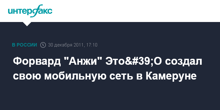 Москва. 30 декабря. INTERFAX.RU - Нападающий футбольного клуба "Анжи" Самюэль Это'О создал в Камеруне мобильную сеть Set'Mobile, которая призвана предоставить дешевый доступ к связи для населения.
