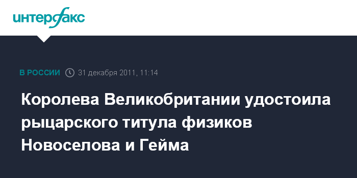 Королева Великобритании удостоила рыцарского титула физиков Новоселова и Гейма