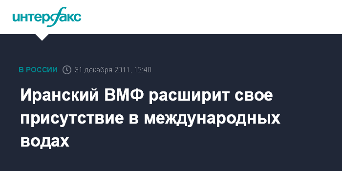 Тегеран. 31 декабря. INTERFAX.RU - Командование ВМФ Ирана намерено расширить присутствие кораблей в международных водах, сообщает в субботу местный телеканал "Пресс-ТВ" со ссылкой на главкома иранского ВМФ контр-адмирала Хабиболлу Сайяри. "Мы не намерены нарушать территориальные воды какой-либо страны, однако мы готовы расширить свое присутствие в международных водах в рамках международного права, о чем ранее заявил наш лидер (духовный лидер Ирана аятолла Али Хаменеи - ИФ)", - сказал главком.
