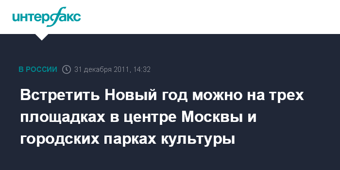 Москва. 31 декабря. INTERFAX.RU - Праздничные новогодние гуляния будут организованы в Москве с 22:00 31 декабря до 1:30 1 января на Тверской, Театральной и Лубянской площадях, сообщили "Интерфаксу" в столичном департаменте культуры. "На этих площадях выступят популярные артисты эстрады и народные коллективы", - сказал собеседник агентства.