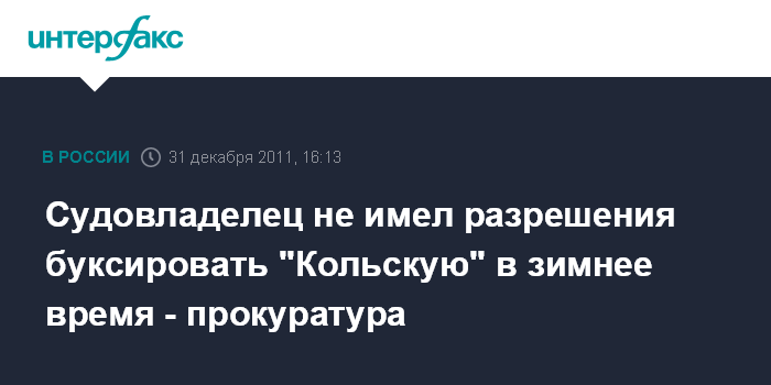 Судовладелец не имел разрешения буксировать "Кольскую" в зимнее время - прокуратура
