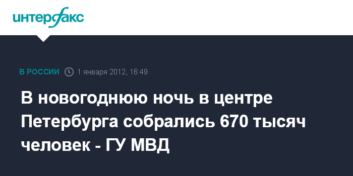 В новогоднюю ночь в центре Петербурга собрались 670 тысяч человек - ГУ МВД