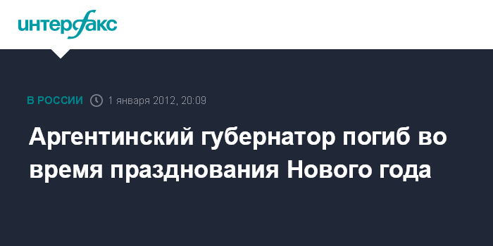 Буэнос-Айрес. 1 января. INTERFAX.RU - Губернатор аргентинской провинции Рио-Негро Карлос Сориа погиб при загадочных обстоятельствах во время празднования Нового года, сообщили в воскресенье в местной полиции.