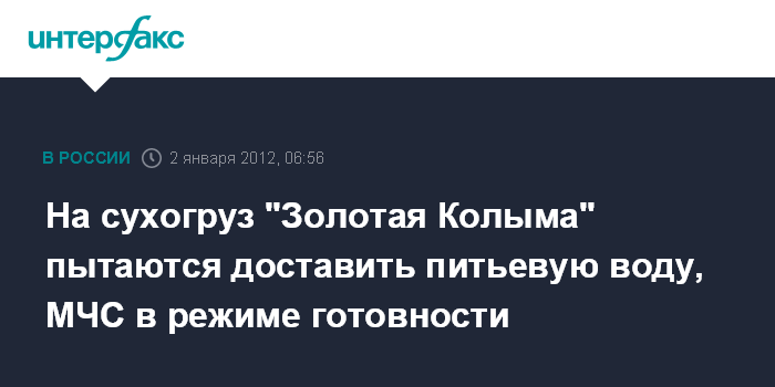 30 декабря теплоход "Золотая Колыма" с 25 тыс. тоннами угля на борту, безрезультатно ожидавший разрешения на заход в Магадан для разгрузки, в пятницу попытался войти в порт по аварийной радиограмме, поскольку заканчивался запас питьевой воды.