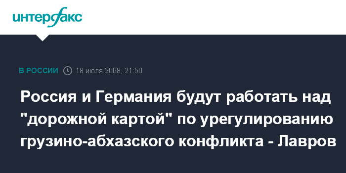 Жуковка (Московская область). 18 июля. ИНТЕРФАКС - Россия и Германия постараются разработать "дорожную карту" с целью способствовать продвижению Грузии и Абхазии к прямым переговорам, заявил глава МИД России Сергей Лавров.