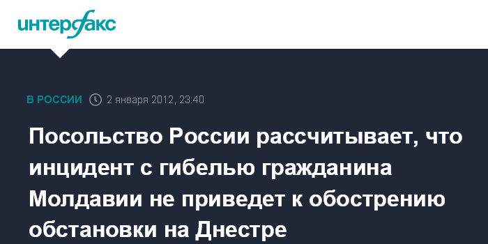 Посольство России рассчитывает, что инцидент с гибелью гражданина Молдавии не приведет к обострению обстановки на Днестре