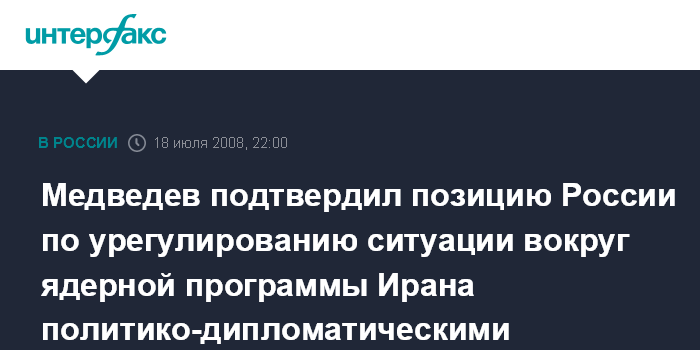 Медведев подтвердил позицию России по урегулированию ситуации вокруг ядерной программы Ирана политико-дипломатическими средствами