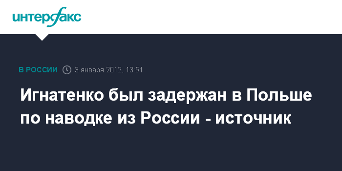 Москва. 3 января. INTERFAX.RU - Бывший зампрокурора Подмосковья Александр Игнатенко, длительное время находившийся в бегах, был задержан польскими спецслужбами по наводке российских коллег, сообщил "Интерфаксу" во вторник источник в правоохранительных органах.