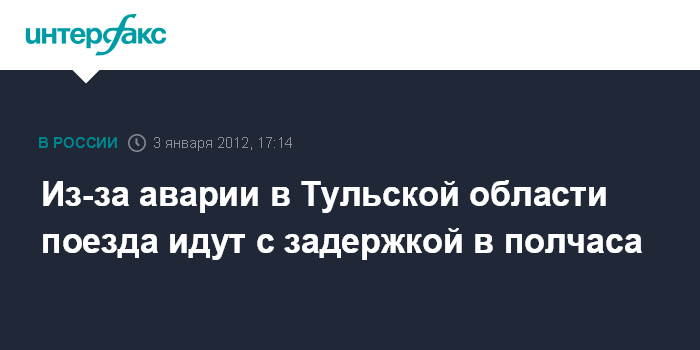 Из-за аварии в Тульской области поезда идут с задержкой в полчаса