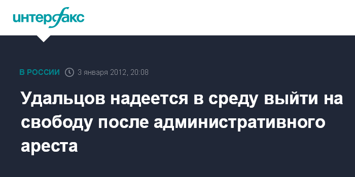 Москва. 3 января. ИНТЕРФАКС - Оппозиционер Сергей Удальцов рассчитывает, что в среду срок его ареста завершится, несмотря на его пребывание в больнице из-за объявленной сухой голодовки.