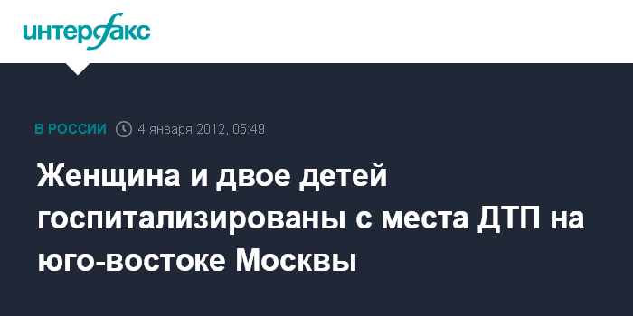 Женщина и двое детей госпитализированы с места ДТП на юго-востоке Москвы