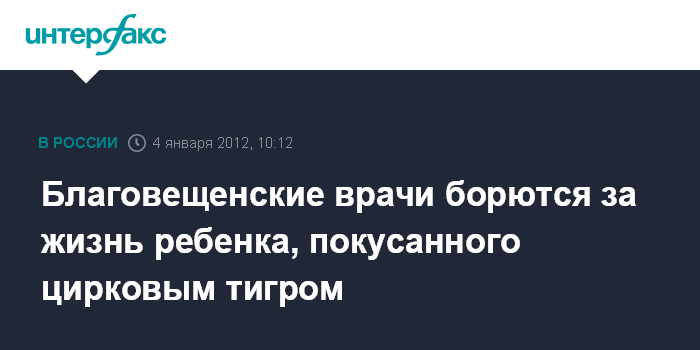 Благовещенские врачи борются за жизнь ребенка, покусанного цирковым тигром
