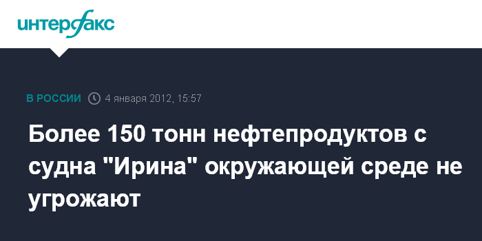 Более 150 тонн нефтепродуктов с судна "Ирина" окружающей среде не угрожают