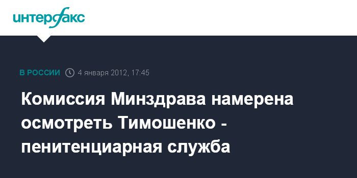 Комиссия Минздрава намерена осмотреть Тимошенко - пенитенциарная служба