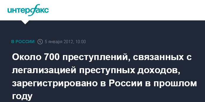Около 700 преступлений, связанных с легализацией преступных доходов, зарегистрировано в России в прошлом году