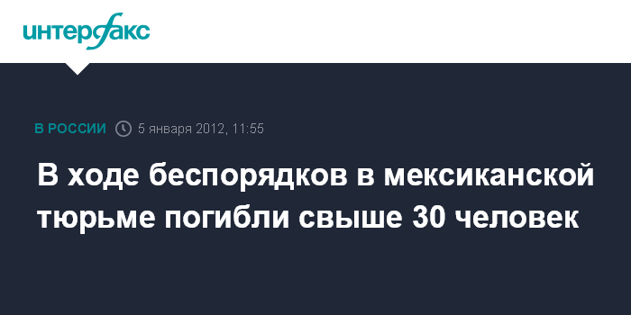 Лондон. 5 января. INTERFAX.RU - По меньшей мере 31 заключенный погиб, 13 получили ранения во время массой драки в тюрьме города Альтамира на севере Мексики.