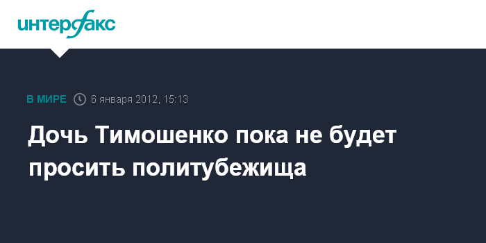 Харьков. 6 января. INTERFAX.RU - Дочь экс-премьера Юлии Тимошенко Евгения пока не собирается просить политическое убежище в другой стране, заявил защитник Ю.Тимошенко Сергей Власенко.
