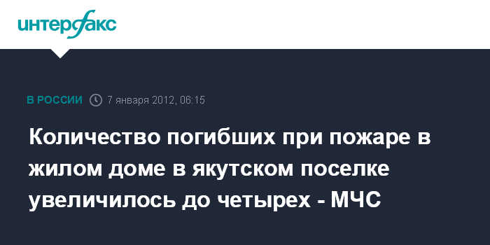 Количество погибших при пожаре в жилом доме в якутском поселке увеличилось до четырех - МЧС