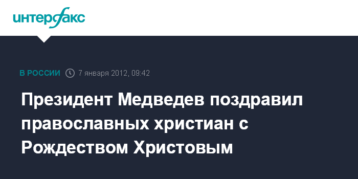 Москва. 7 января. INTERFAX.RU - Президент России Дмитрий Медведев поздравил православных христиан и всех граждан РФ, отмечающих Рождество Христово.