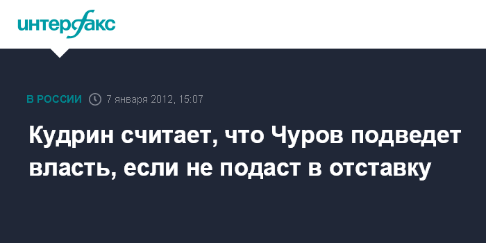 Москва. 7 января. INTERFAX.RU - Экс-министр финансов Алексей Кудрин вновь призвал главу ЦИК РФ Владимира Чурова подать в отставку.