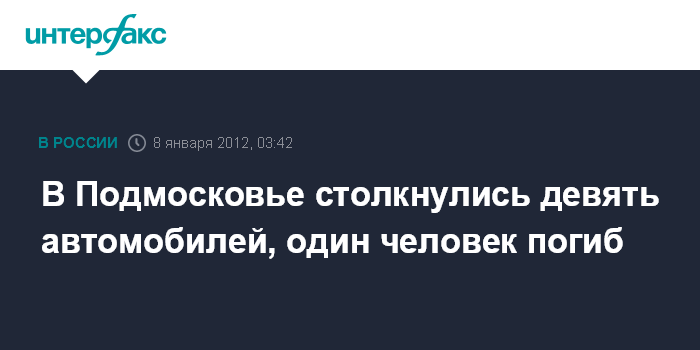 Москва. 8 января. ИНТЕРФАКС - Один человек погиб, трое получили ранения при столкновении девяти автомобилей на западе Московской области, сообщил "Интерфаксу" источник в правоохранительных органах.