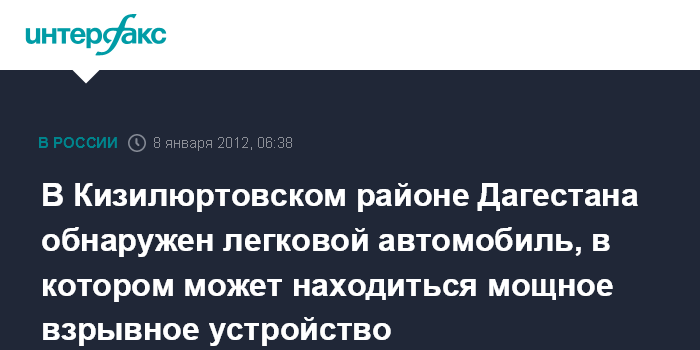 Ростов-на-Дону. 8 декабря. ИНТЕРФАКС-ЮГ – На окраине села Нечаевка в Дагестане обнаружен автомобиль «Лада Приора», в котором, предположительно, может быть установлено СВУ, сообщили агентству «Интерфакс – Юг» в правоохранительных органах Дагестана.