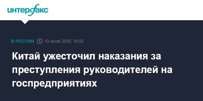 Москва. 19 июля. INTERFAX.RU - Центральная комиссия по проверке партийной дисциплины при ЦК Компартии Китая опубликовала новые, более жесткие правила поведения руководителей госпредприятий в КНР, сообщают китайские СМИ
