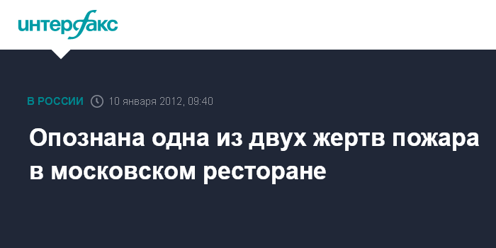 Москва. 10 января. INTERFAX.RU - Одна из женщин, погибших в результате взрыва в ресторане на юго-западе Москвы, остается неопознанной, сообщил "Интерфаксу" источник в правоохранительных органах.